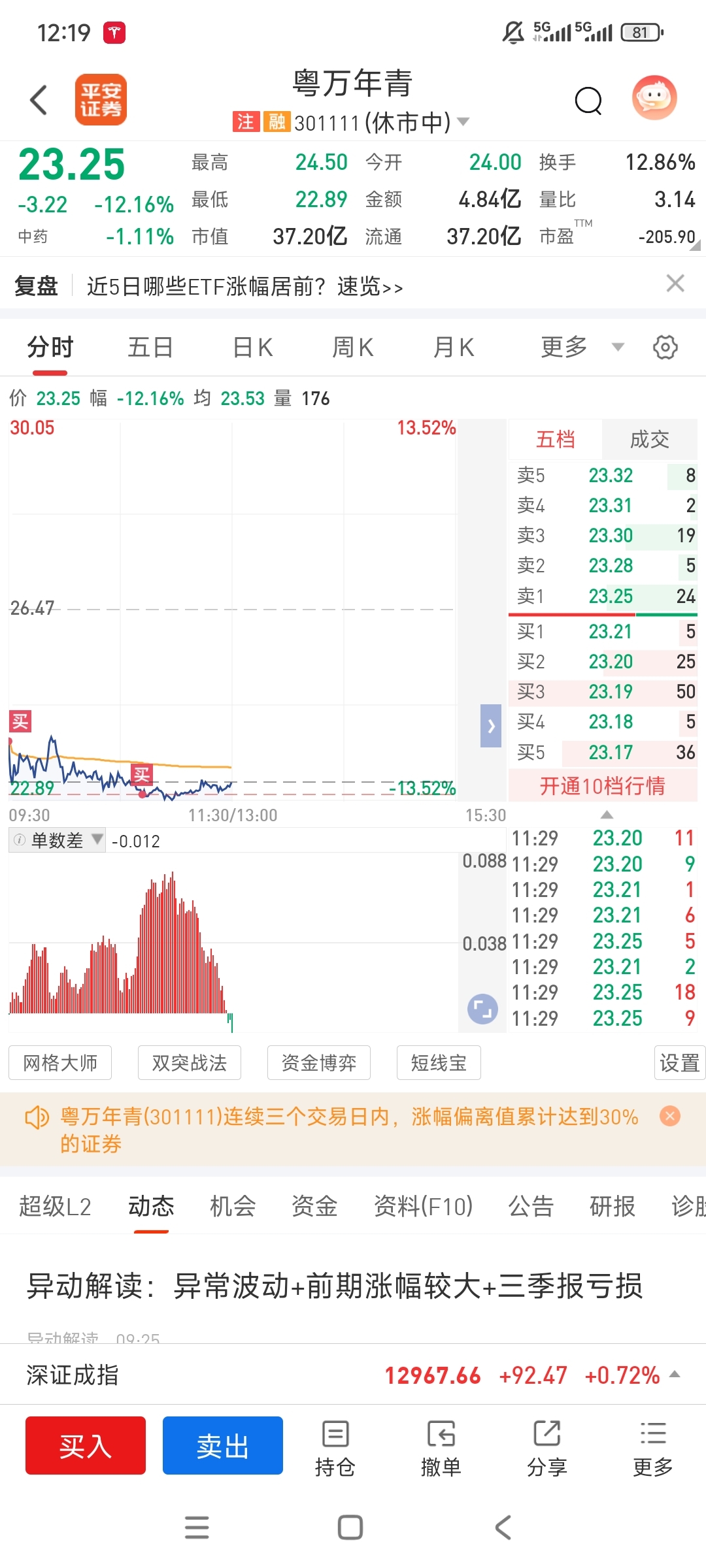 $粤万年青(SZ301111)$ 昨天进的,被迫加仓,下午能不能给个面子