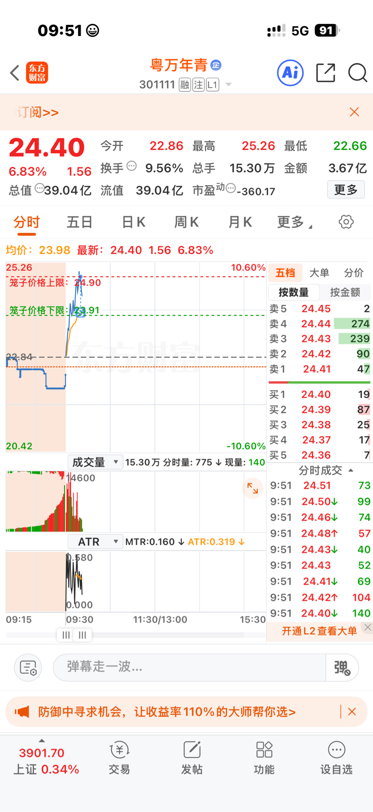 $粤万年青(SZ301111)$ 25走了,感谢主力9个点