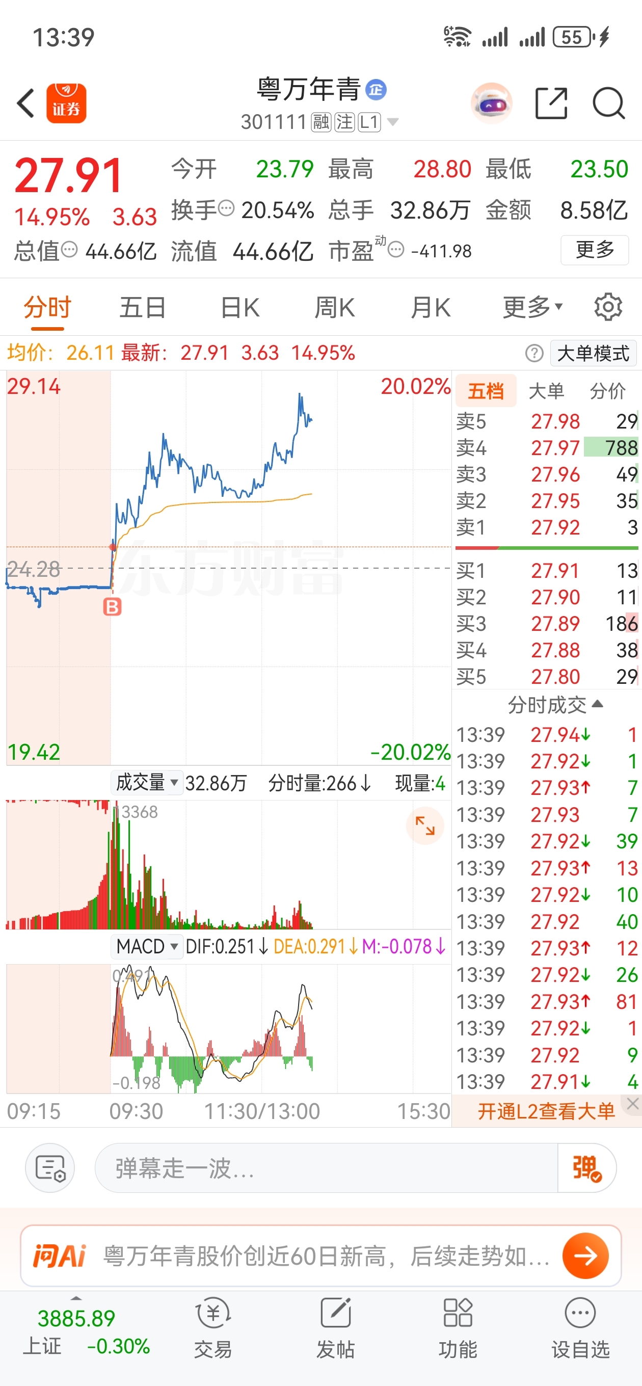 $粤万年青(SZ301111)$ 看到很多人卖飞唱空,现在我来了,该股就大概率还会上涨,不吹不黑,技术说话!关注涅槃刺客,专业短线,让你赚钱如喝水一样简单。