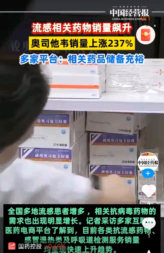 据叮当快药平台12月3日发布数据,最近流感相关药品和检测试剂需求直线上升。特别是抗病毒类药成增长明显,新一代的抗病毒药“速福达”销量更是环比猛增了9倍,还有经典的“奥司他韦”销量环比也增长了7倍。