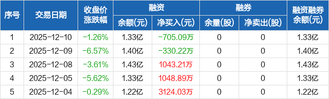 粤万年青:融资净偿还705.09万元,融资余额1.33亿元(12-10)