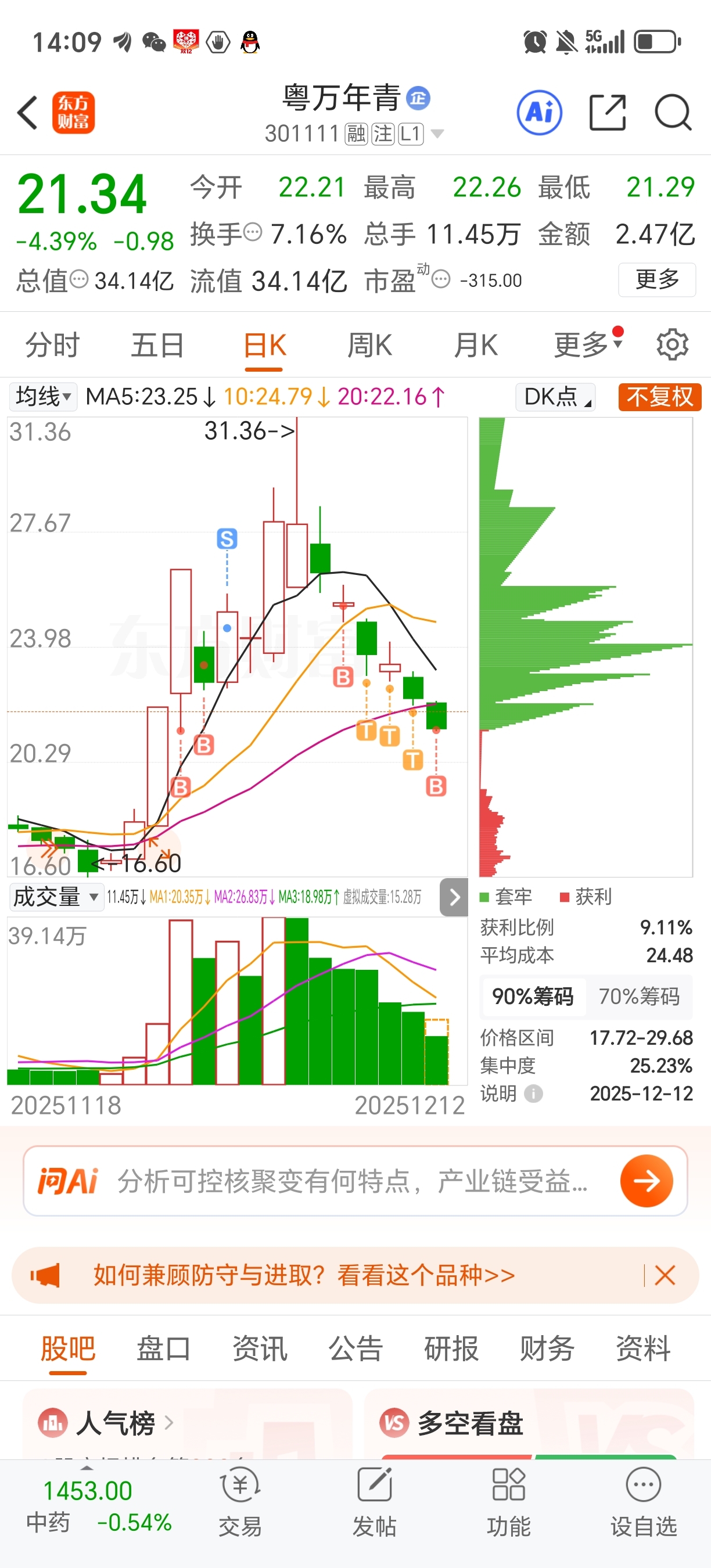下跌中继的票真不能玩,这个票把我玩吐了!今天还没有卖,尾盘不管如何,都得卖出去,