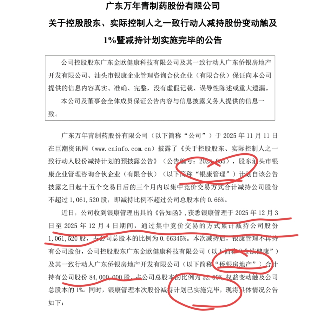 完事了,完事了,完事了。银康和侨银都减持完了。4号当天就已实施完毕。我们现在跌3