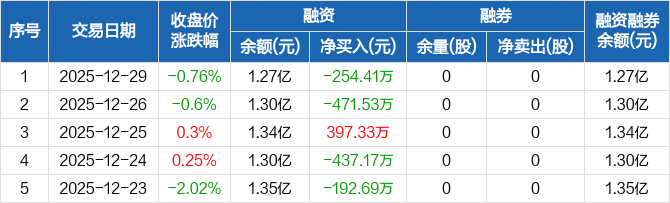粤万年青:融资净偿还254.41万元,融资余额1.27亿元(12-29)