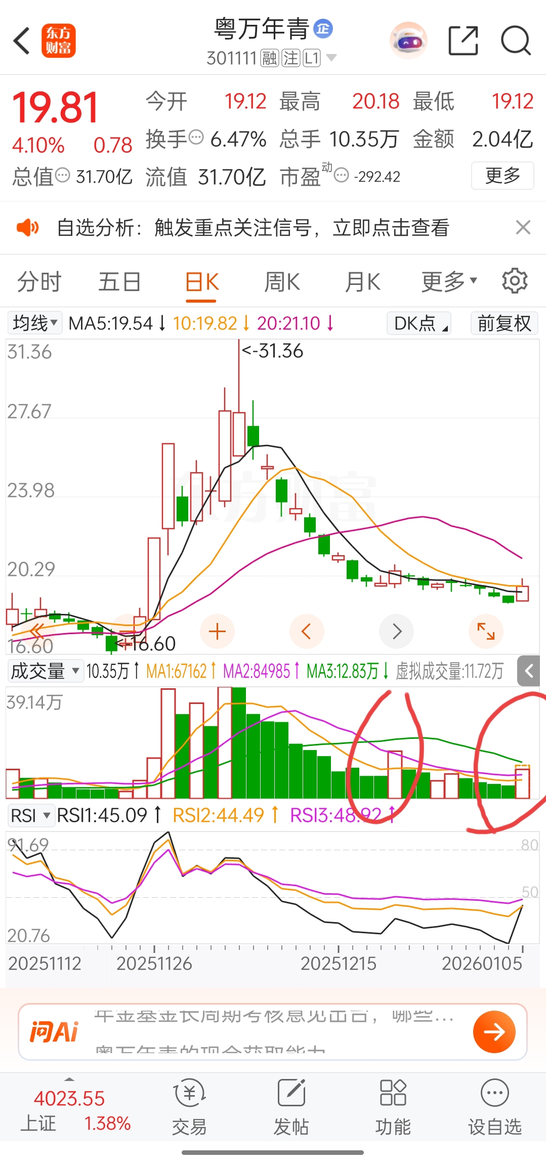 $粤万年青(SZ301111)$ 这个两根倍量,要么暴跌要么暴涨