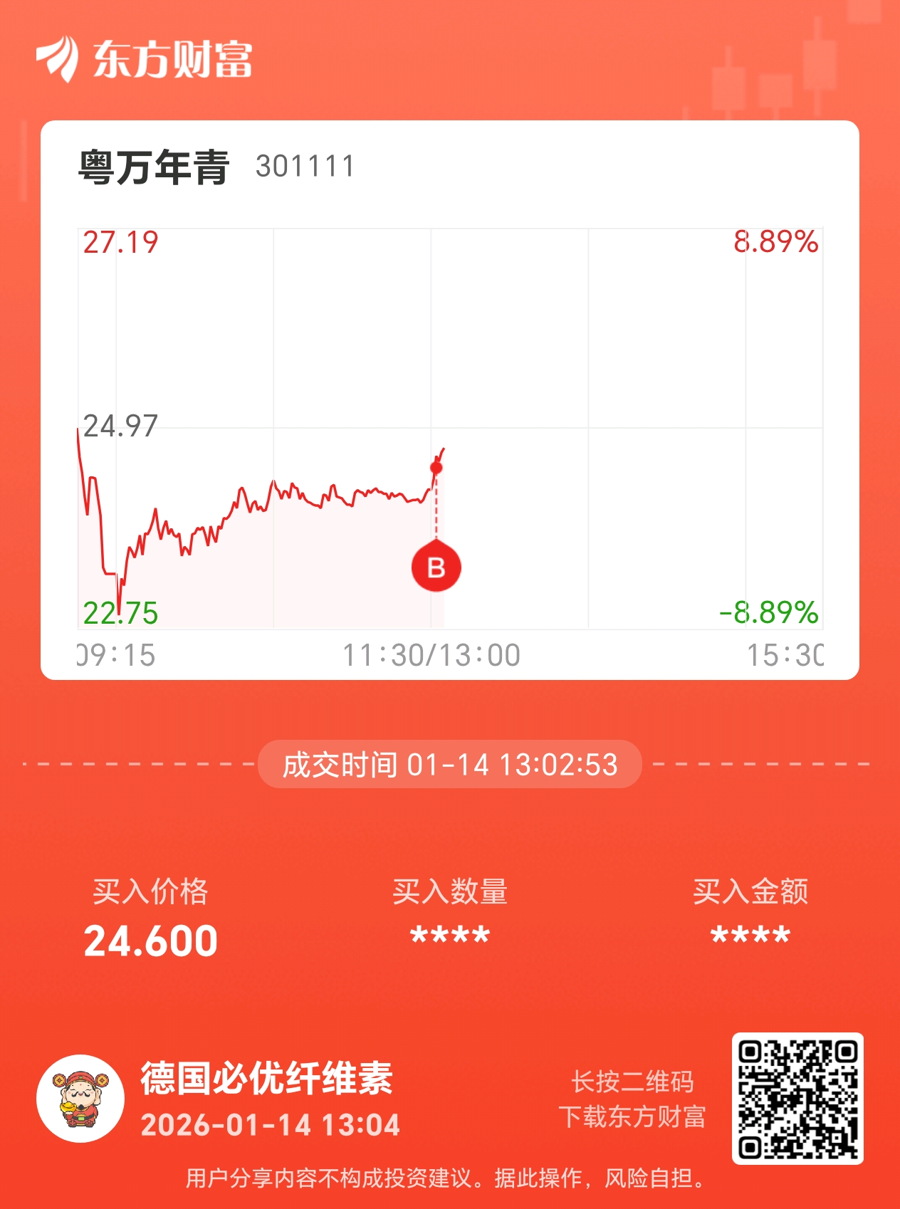 温馨提示: 1.根据《证券法》规定,禁止编造、传播虚假信息或者误导性信息,扰乱证券市场;2.用户在本社区发表的所有资料、言论等仅代表个人观点,与本网站立场无关,不对您构成任何投资建议。用户应基于自己的独立判断,自行决定证券投资并承担相应风险。《东方财富社区管理规定》