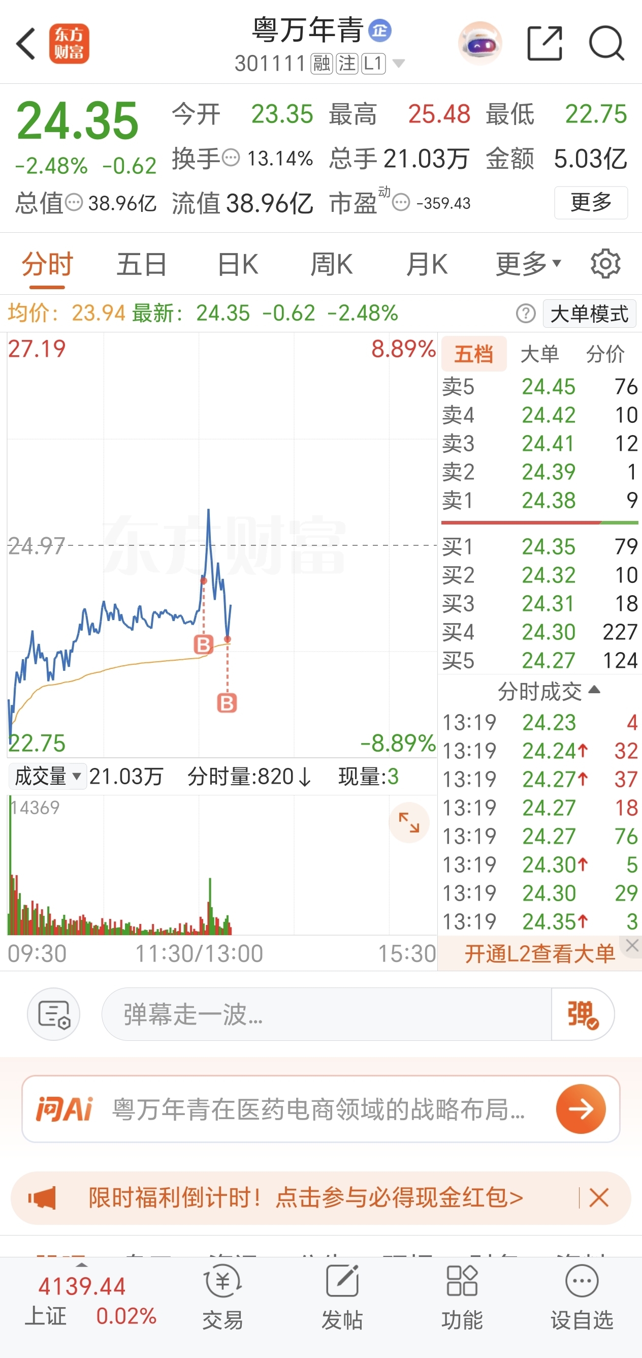 $粤万年青(SZ301111)$ 补仓了