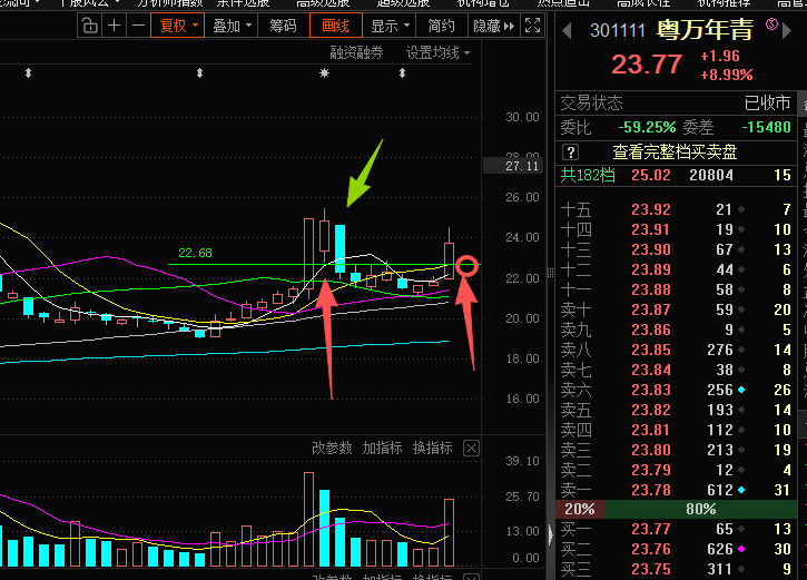 这个票之前推演过,精准回踩到22.68左右,很多人当天低吸入场获利,次日跑了。现在震荡了几天,经过重新推演之后,发现原来的推演继续有效,明天短线回踩锚定22.68左右!!!