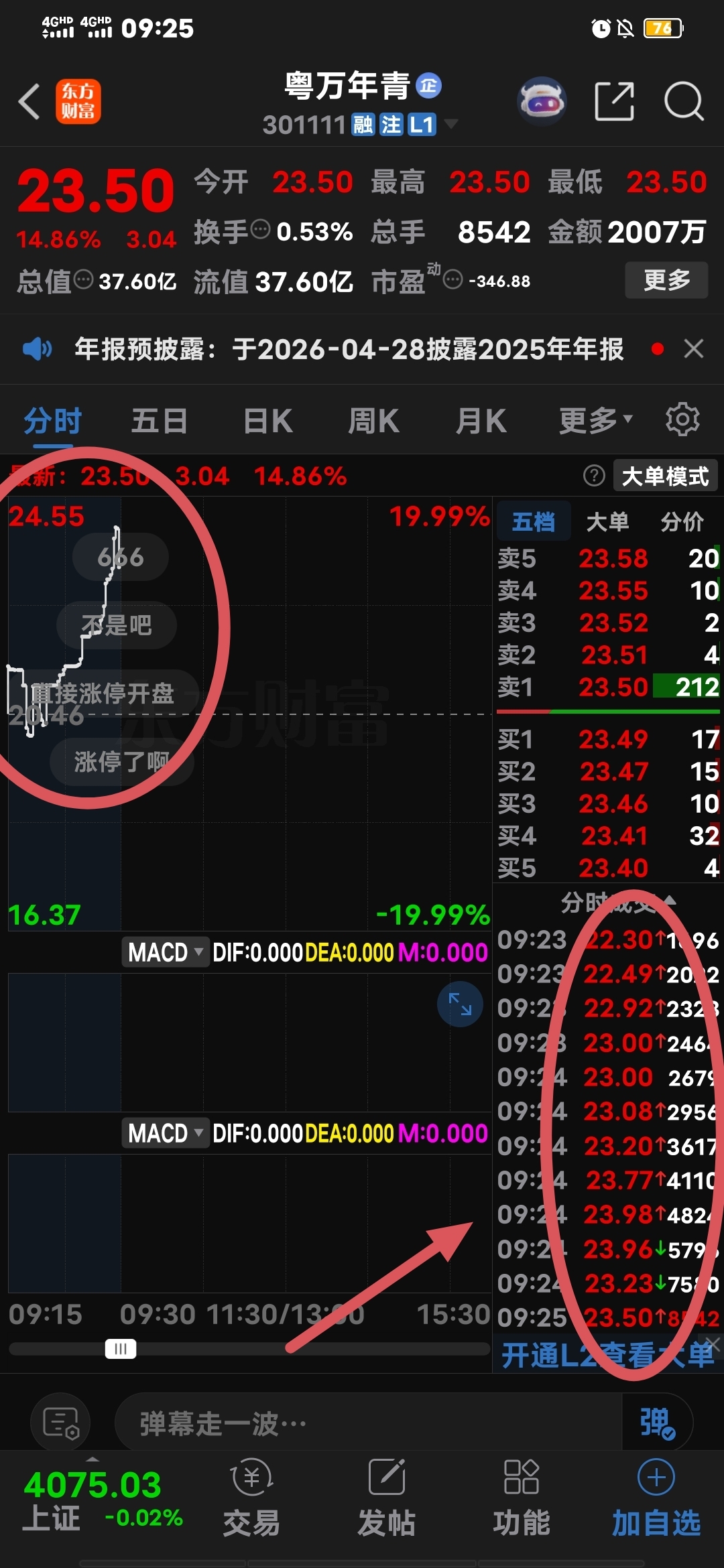 $粤万年青(SZ301111)$ 哪个大佬解释一下,为什么不像田中精机一样高开17%+封涨停?