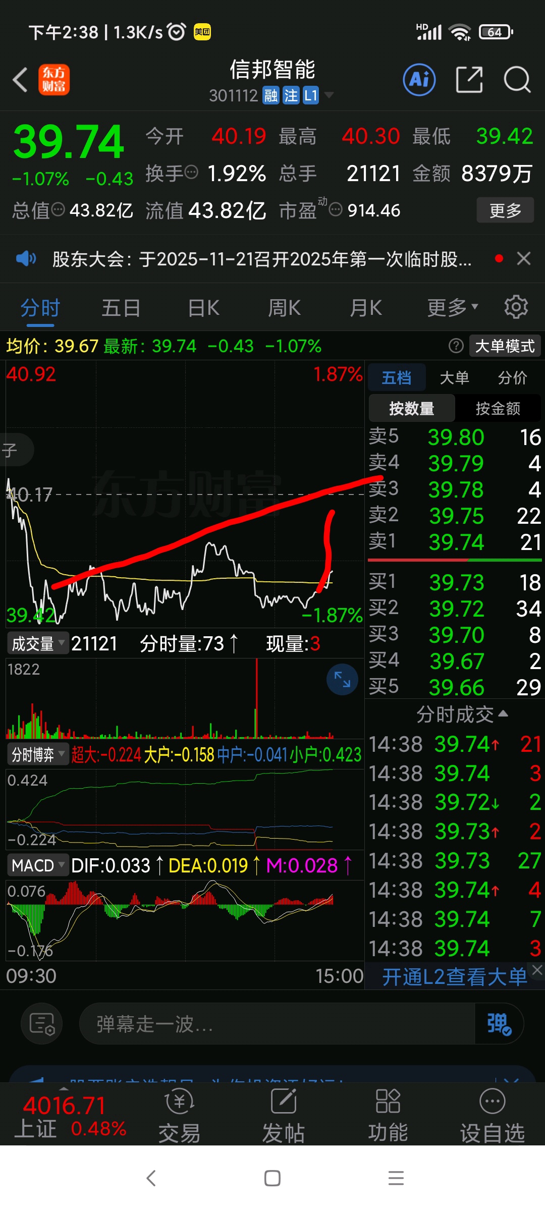 $信邦智能(SZ301112)$ 尾盘会涨吗?,涨了就加仓