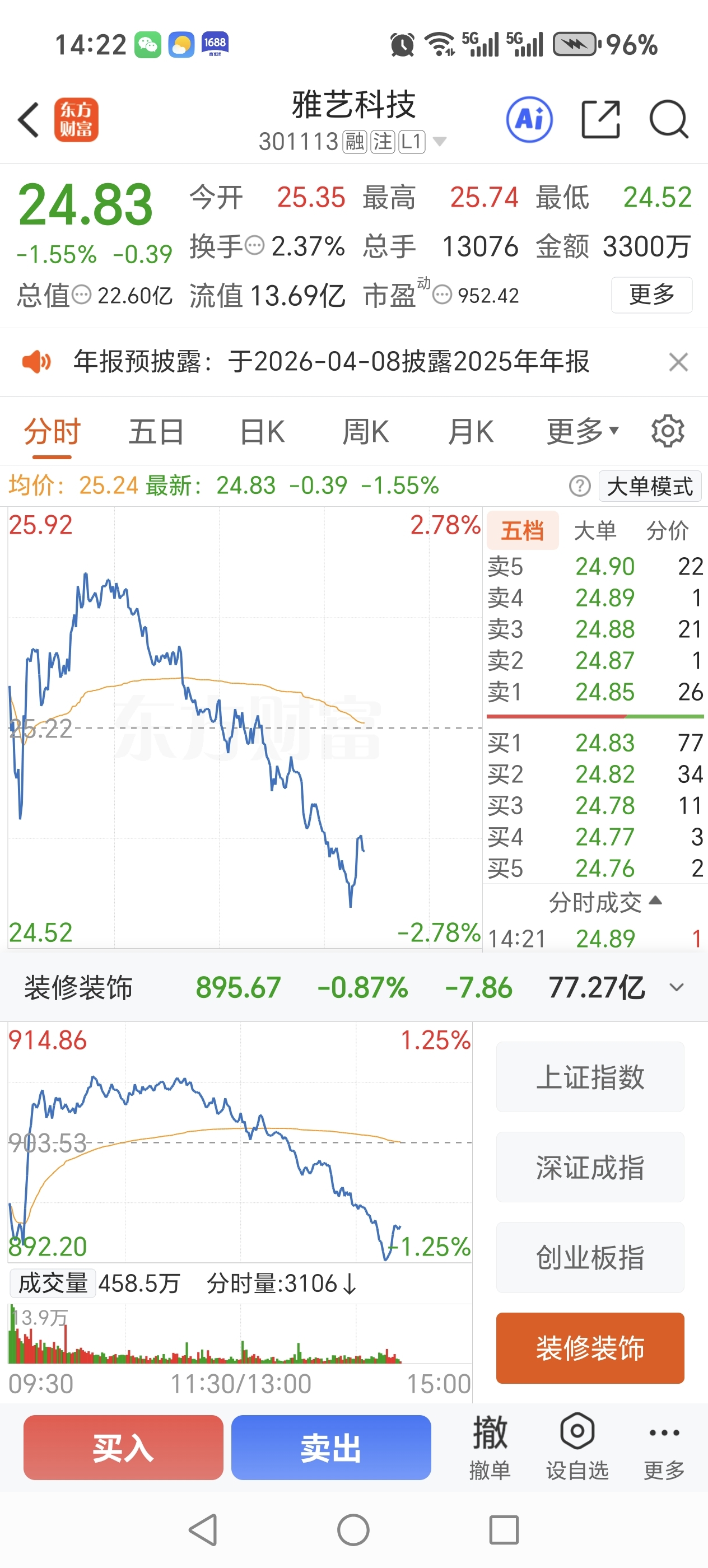 $雅艺科技(SZ301113)$ 这图给板块一模一样,就是跌的时候一样,