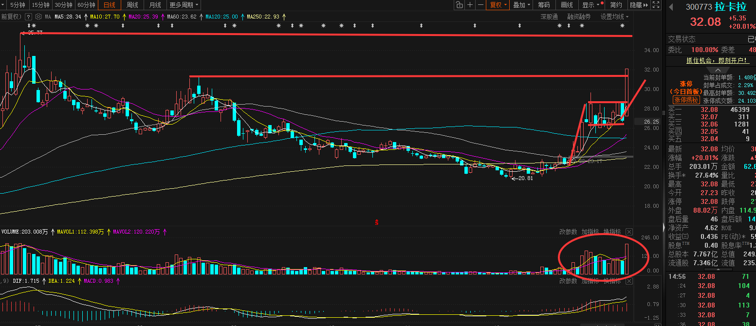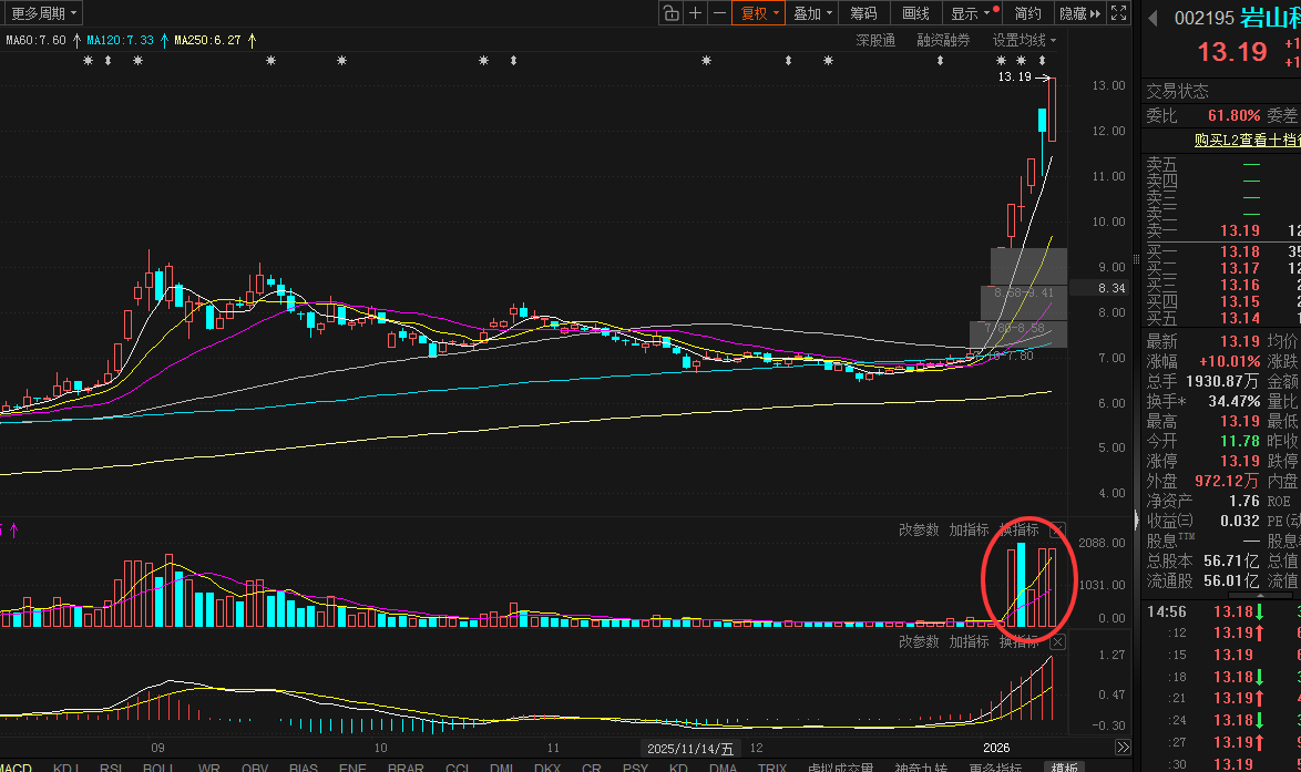 技术上,在市场炒运用时,股价直接给到三个一字板,这意味前期主力已经介入比较深,随后断一字板再次给到5天三板,可见市场追捧情绪是非常高。暂时可将其视为是这波AI运用炒作的主要龙头之一。这也就意味它可视为市场炒运用的重要风向标,如它倒下,甚至直接大幅调整,则AI运用回调风险会加大,当然出现分化的概率会偏大。昨日涨停多次断板,这意味高位分歧非常大,如此就看今天能否继续给到冲高,如果不行,则代表市场炒运用的热度在下降。