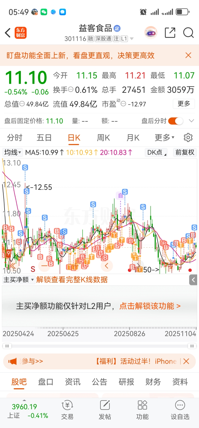 $益客食品(SZ301116)$ 这主力蠢萌蠢萌的