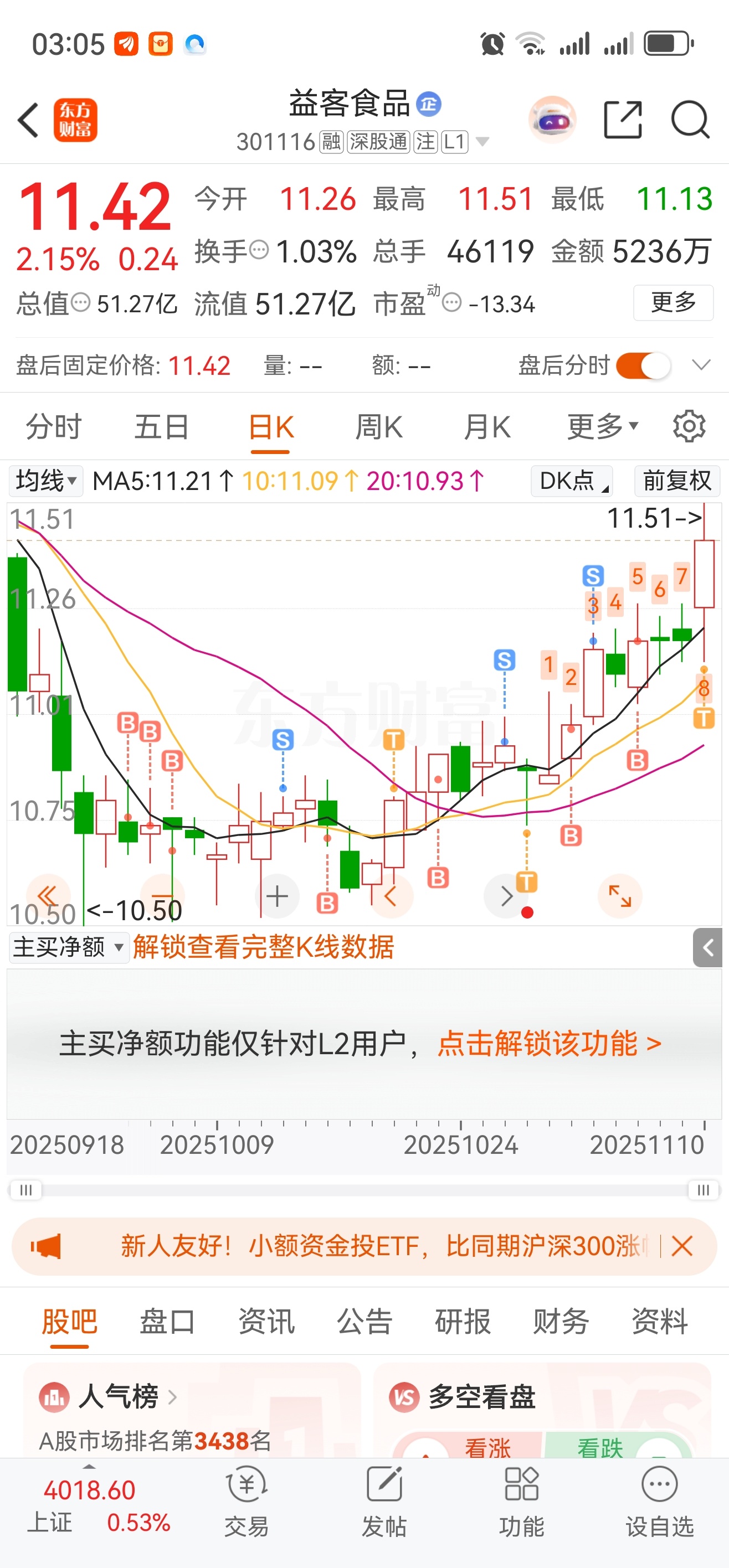$益客食品(SZ301116)$