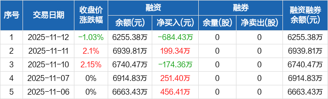 益客食品:融资净偿还684.43万元,融资余额6255.38万元(11-12)