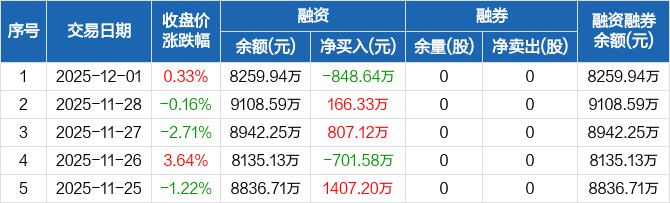 益客食品:融资净偿还848.64万元,融资余额8259.94万元(12-01)