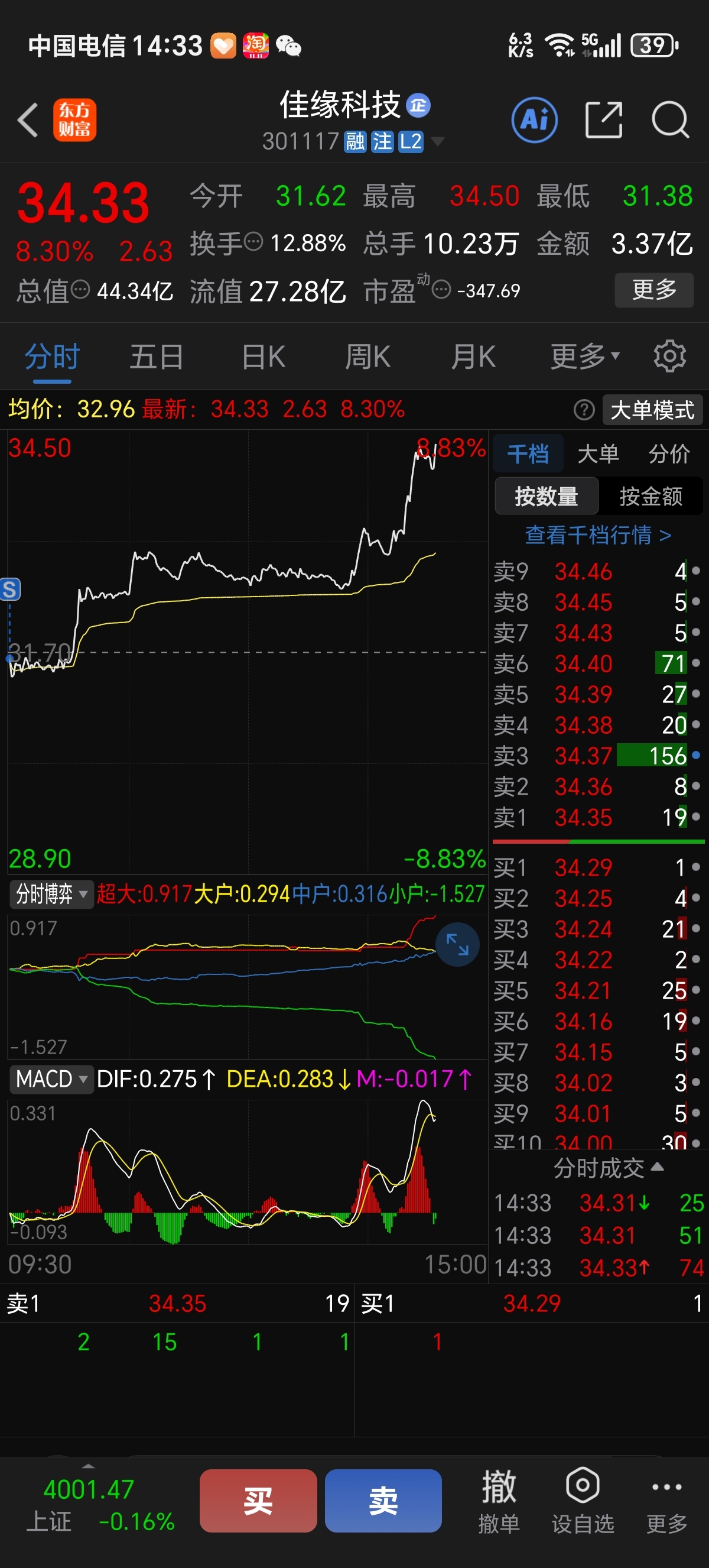 $佳缘科技(SZ301117)$ 伤心啊,卖飞了,这两天看他不死不活的,早晨开盘就给他卖掉,亏大了