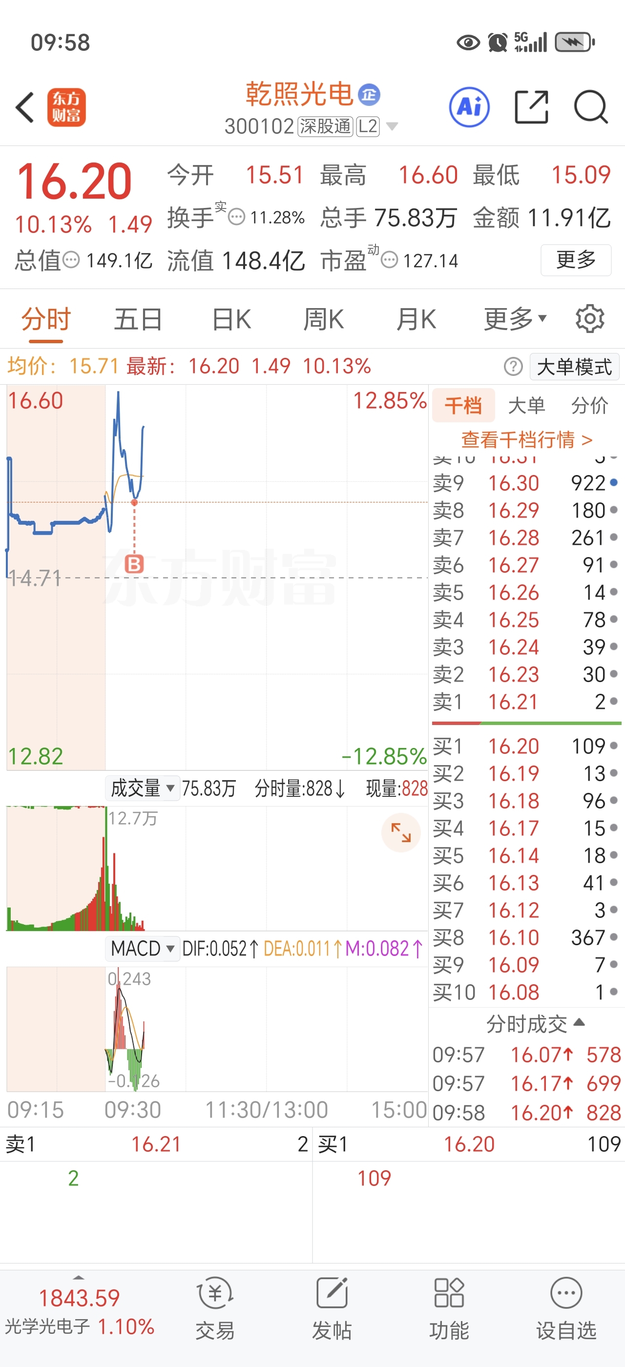 $佳缘科技(SZ301117)$ 绝 为什么两次都封不住,还格局了。少赚了8个点。反手去了商业航空的另一个票,早上主动性很强,应该是板块内最强的一个$乾照光电(SZ300102)$ 蓝色光标也清了,不是大盘这是什么情况,连续普涨4天,涨的我晕头转向的。