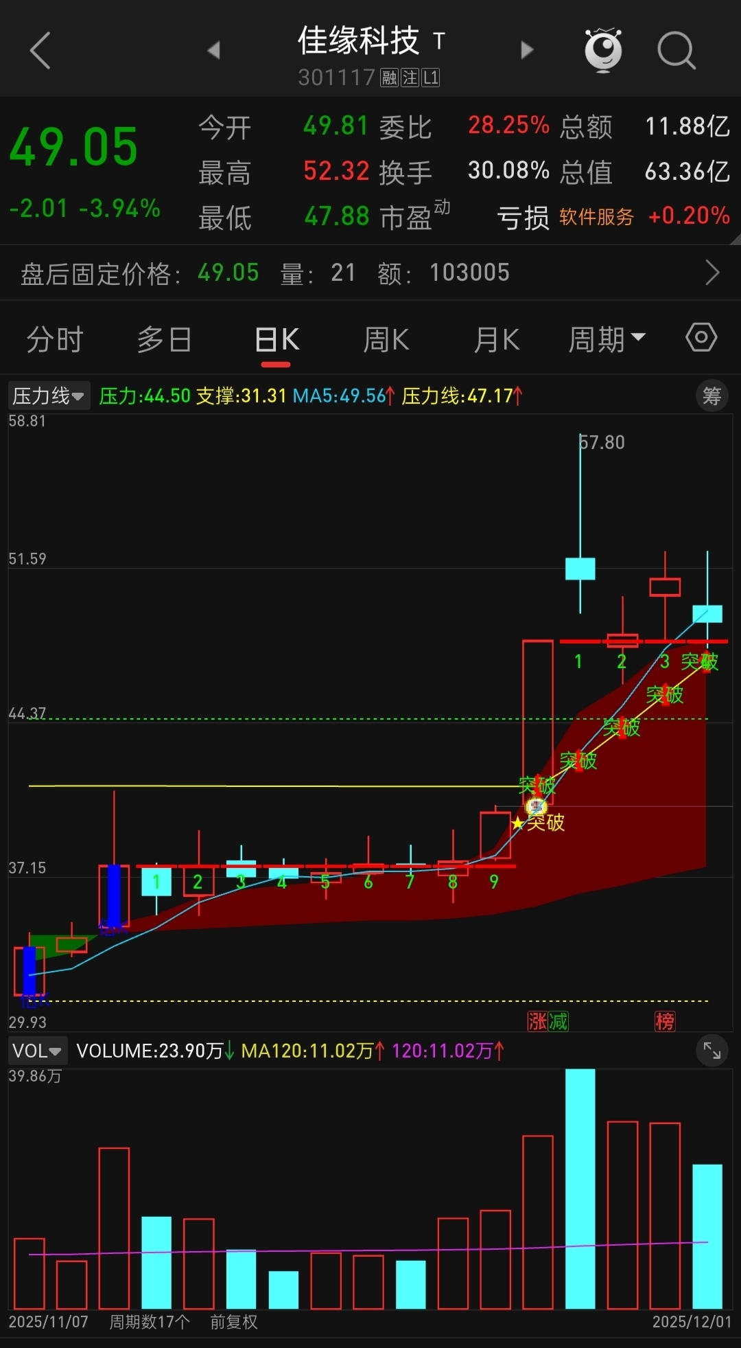 $佳缘科技(SZ301117)$ 已经第4天站在之前的涨停阳线之上,希望会往上突破,之前的震荡洗盘,经历9个交易日才迎来拉升。