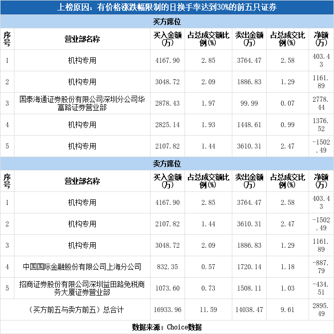 深交所2025年12月11日交易公开信息显示,佳缘科技因属于有价格涨跌幅限制的日换手率达到30%的前五只证券而登上龙虎榜。佳缘科技当日报收55.21元,涨跌幅为7.00%,换手率33.72%,振幅14.24%,成交额14.62亿元。