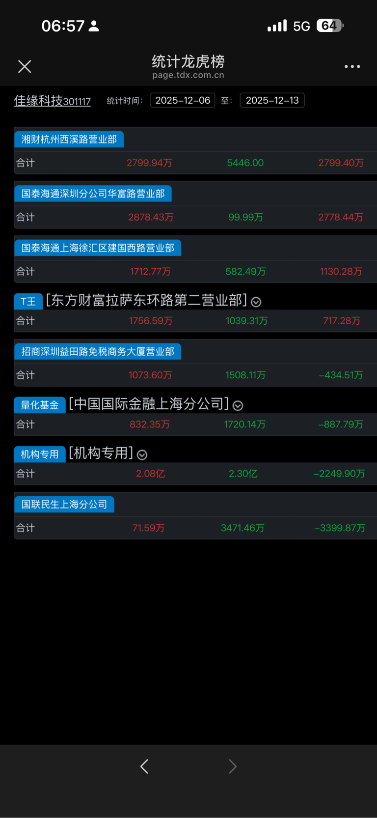 $佳缘科技(SZ301117)$ 来统计一下龙虎榜剩余资金,6号至今的