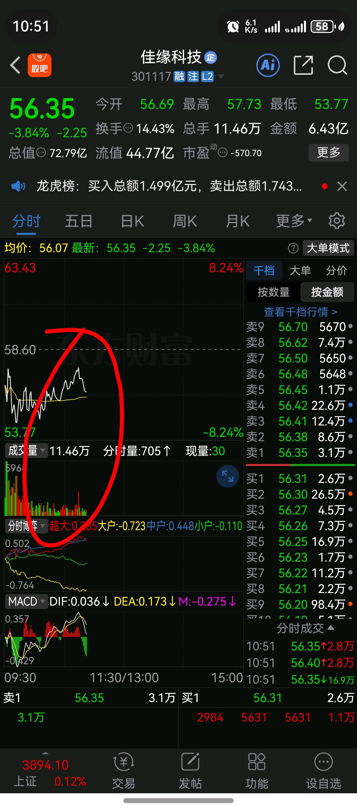 $佳缘科技(SZ301117)$ 佳缘这个走势,今天可能出大阴线,各位注意风险了。今天无缘无故加了个纯蹭的商业航天概念,就是主力的最佳出货机会。