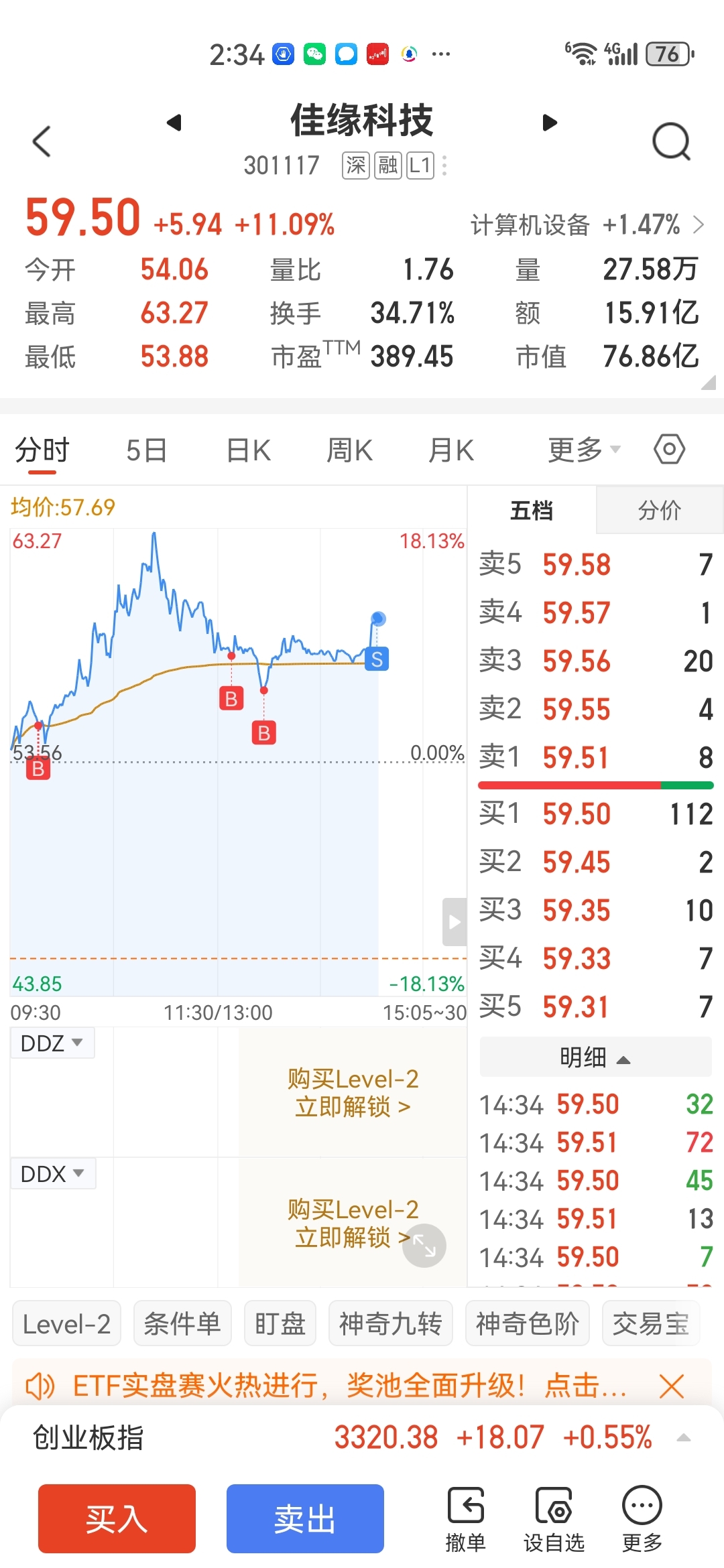 $佳缘科技(SZ301117)$ 卖了,还有一点在里面,加油