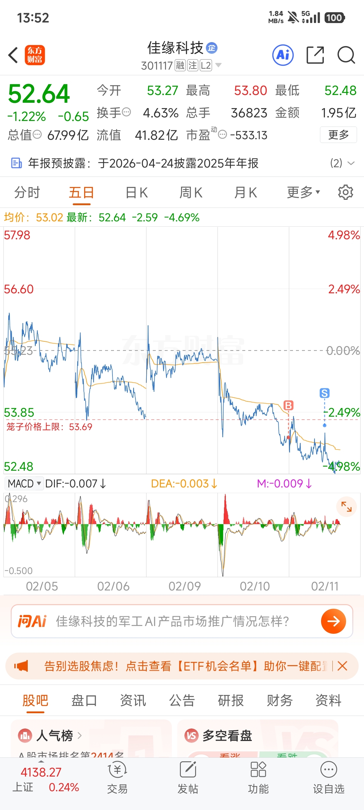 $佳缘科技(SZ301117)$ 拜拜了您了