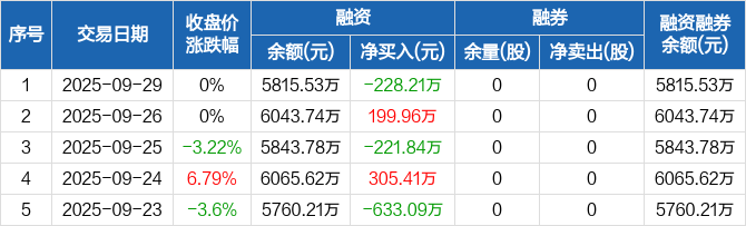 恒光股份:融资净偿还228.21万元,融资余额5815.53万元(09-29)
