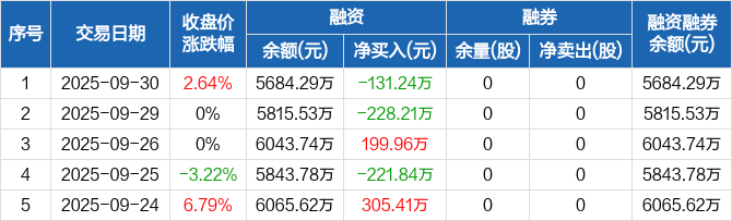 恒光股份:融资净偿还131.24万元,融资余额5684.29万元(09-30)