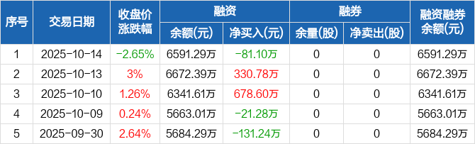 恒光股份:融资净偿还81.1万元,融资余额6591.29万元(10-14)