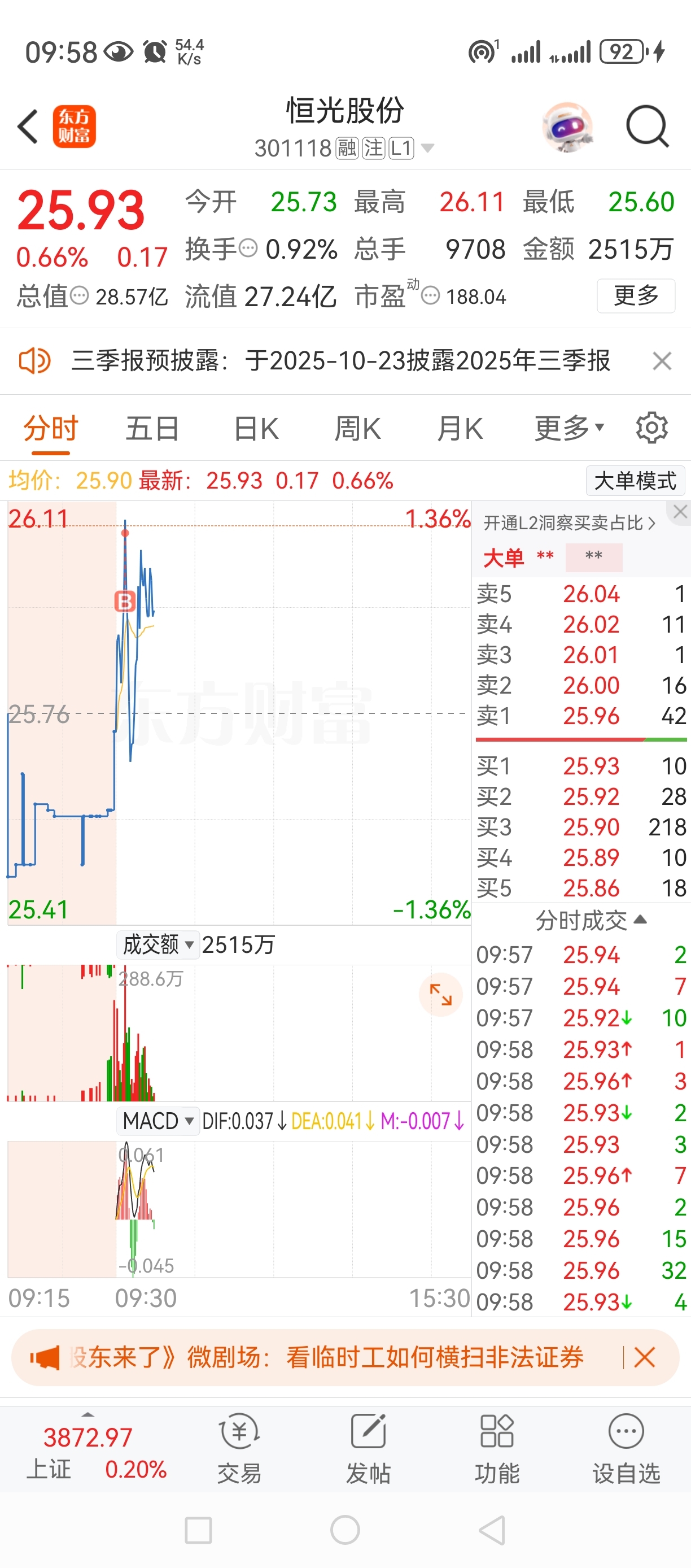 $恒光股份(SZ301118)$ 主力又把我挂在山顶上…#炒股日记#