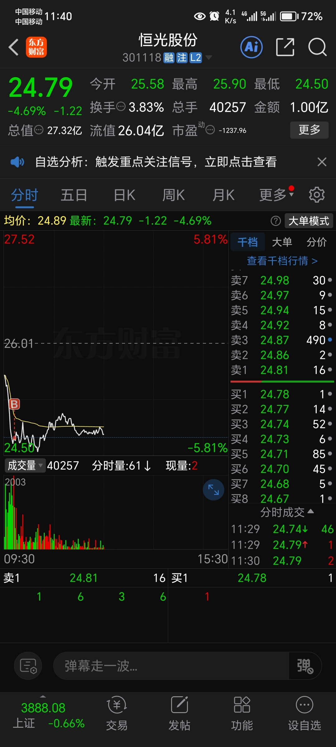 $恒光股份(SZ301118)$ 你们发现没有,基本所有的股票,只要你一买,当天全都在你成本价徘徊。是不是说明了一点,这只股里其实就你一个散户