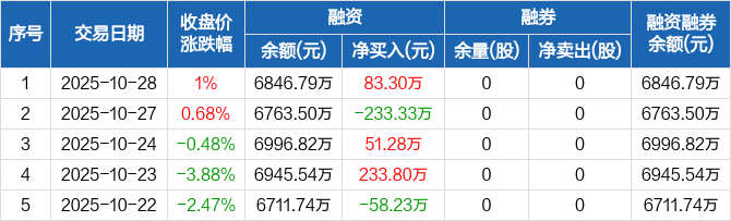 恒光股份:融资净买入83.3万元,融资余额6846.79万元(10-28)