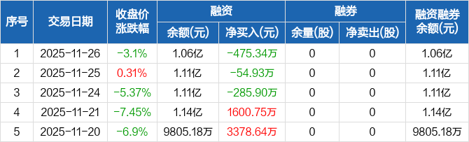 恒光股份:连续3日融资净偿还累计816.17万元(11-26)