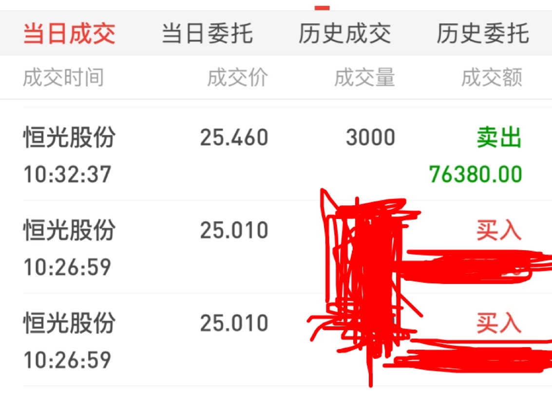 盘中有资金扫货。适当关注。前几天老渔25.6少量介入,今天老渔早盘25.9卖了点后;跌到25附近,老渔又接回来点,不久盘中出现二次几百手,突然打到收盘价附近的单子,0.几秒后回到25附近,于是老渔试着把今天底下25.0几的买单,挂了个几十手25.46的卖单,结果又出现一笔几百手的扫货,老渔的单子瞬间成交,早上三笔合计1000手左右;大家可以适度关注后面的走势。