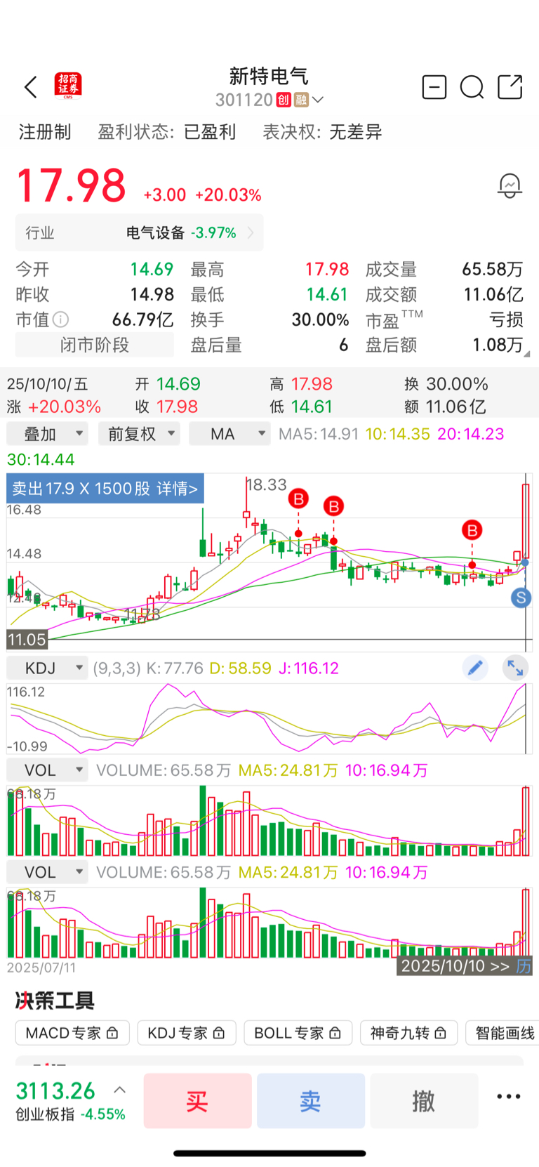 我说他要上20点今天减持1500股