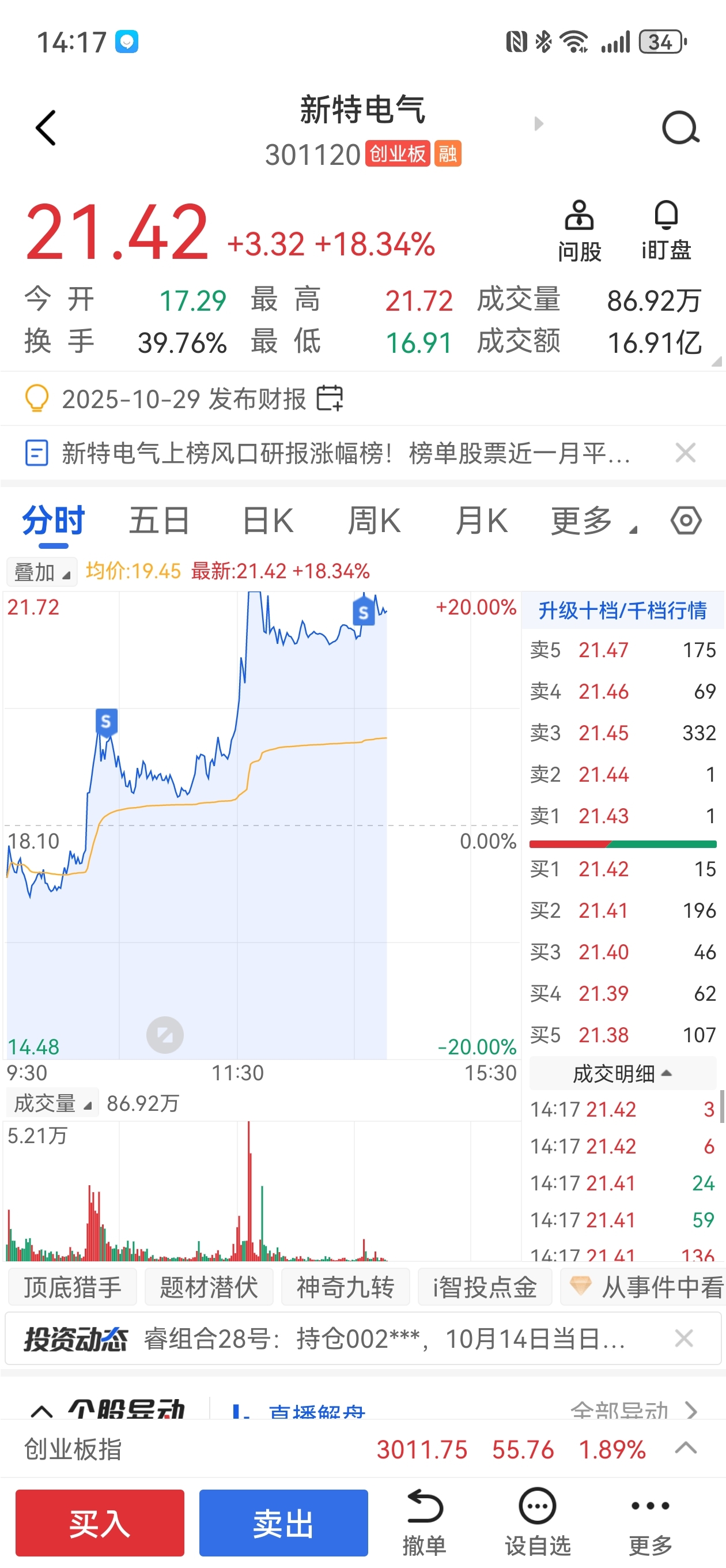 $新特电气(SZ301120)$ 目前剩余半仓成本已打到14