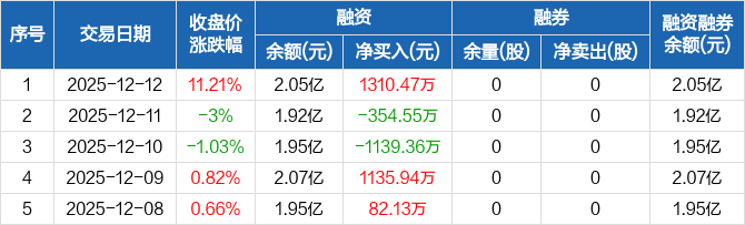 新特电气:融资净买入1310.47万元,融资余额2.05亿元(12-12)