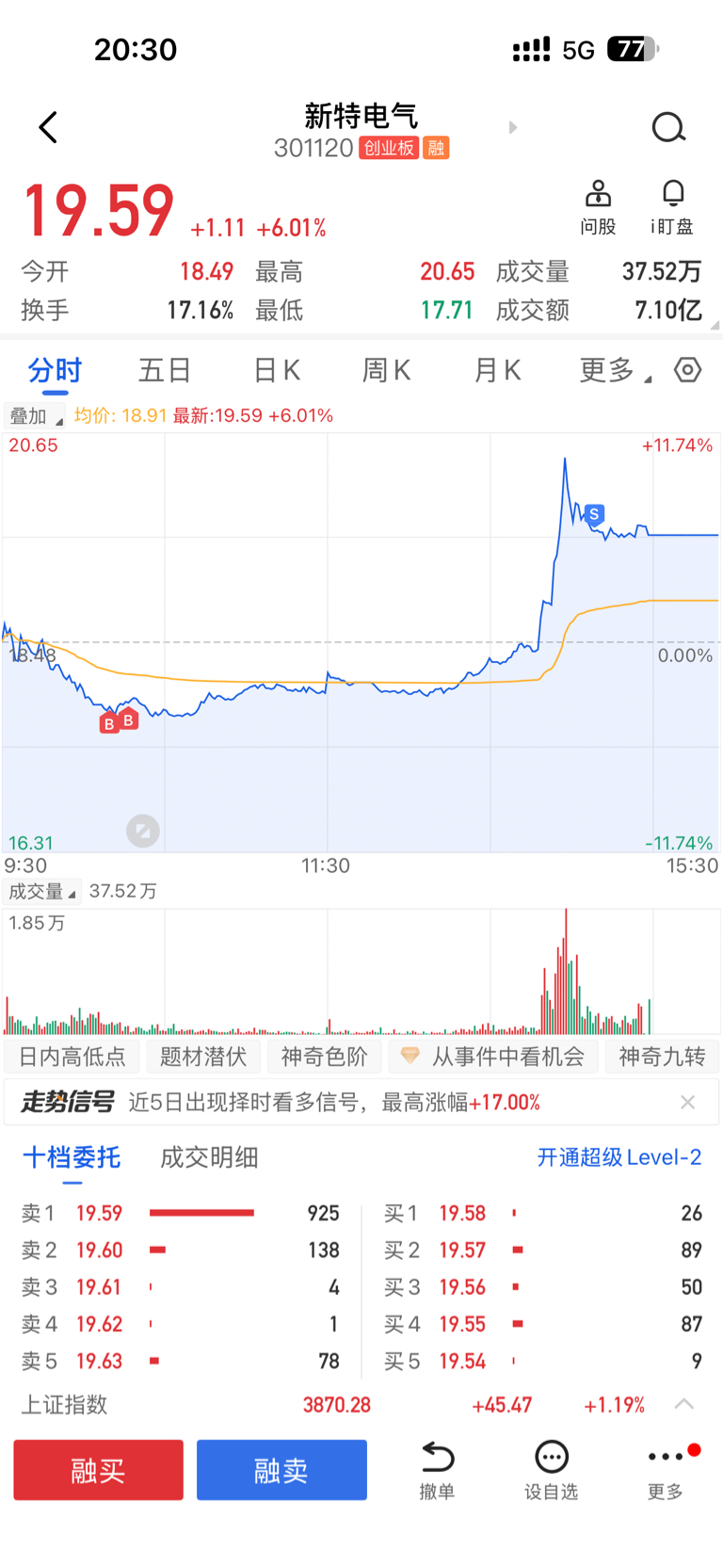 $新特电气(SZ301120)$ T的相当完美,就是忘记了设置止盈点,少赚几个W