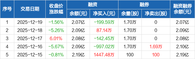 新特电气:融资净偿还199.59万元,融资余额2.07亿元(12-19)