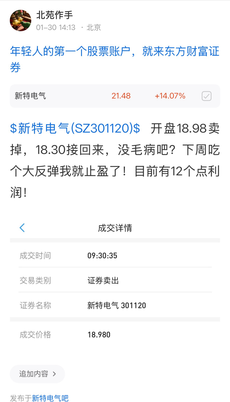 $新特电气(SZ301120)$ 21.55,全部止盈了!没有资金合力打高度,真是没办法!