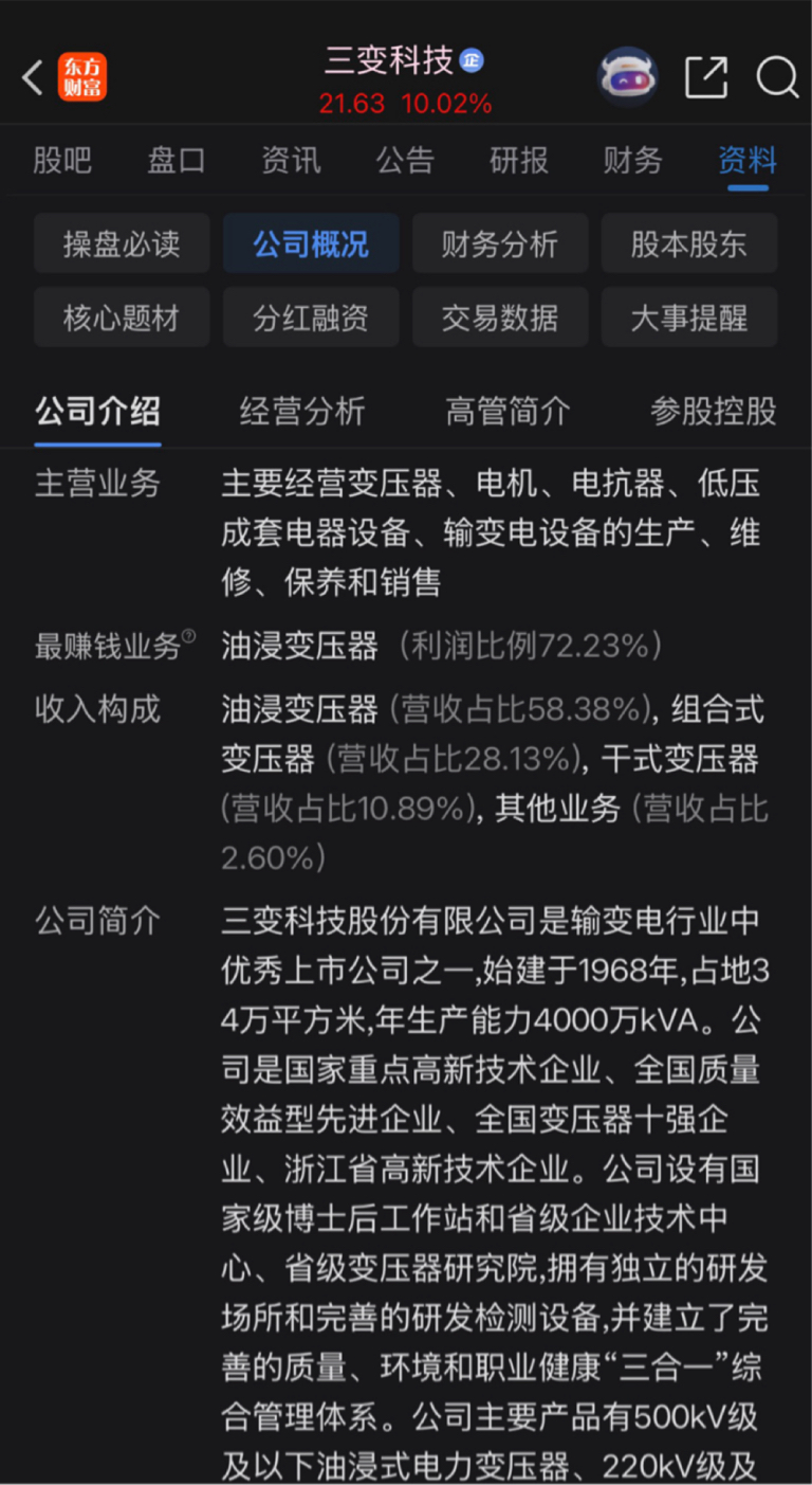 功课都替你们做好了,拿走不谢!新特电气变压器利润比例94.00%,变压器营收占比
