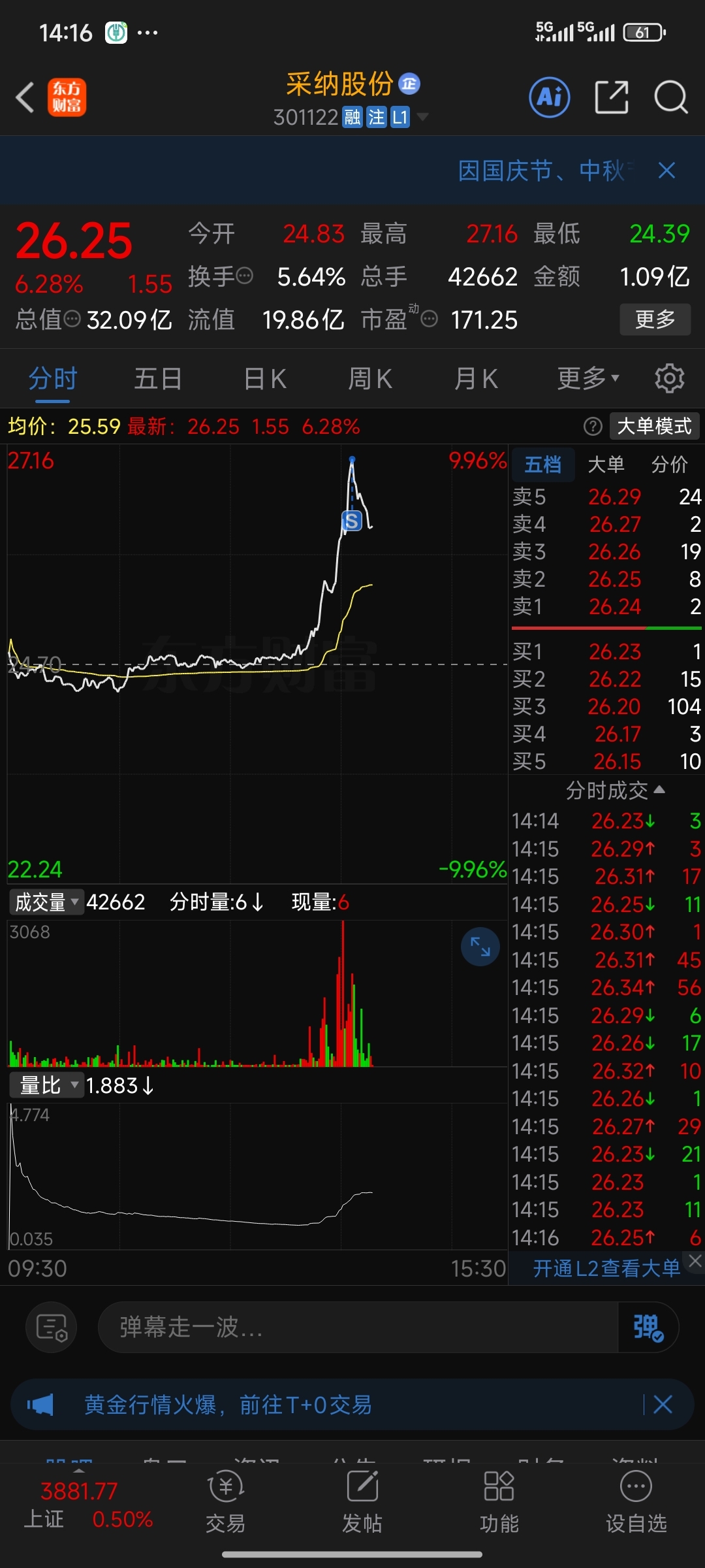 $采纳股份(SZ301122)$ 感谢主力!获利出局,尾盘换了天融信,期待走成下一个安正