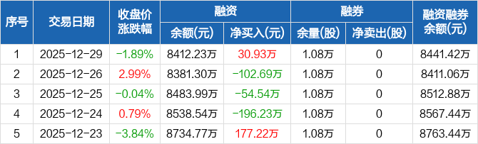 采纳股份:融资净买入30.93万元,融资余额8412.23万元(12-29)