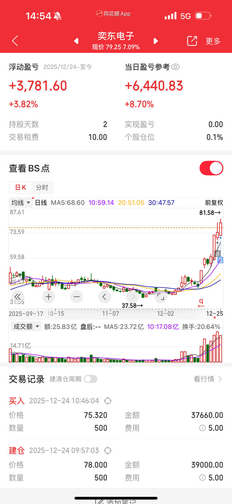 $奕东电子(SZ301123)$ 贪心了一点,80.5走了,赚了3.8个点