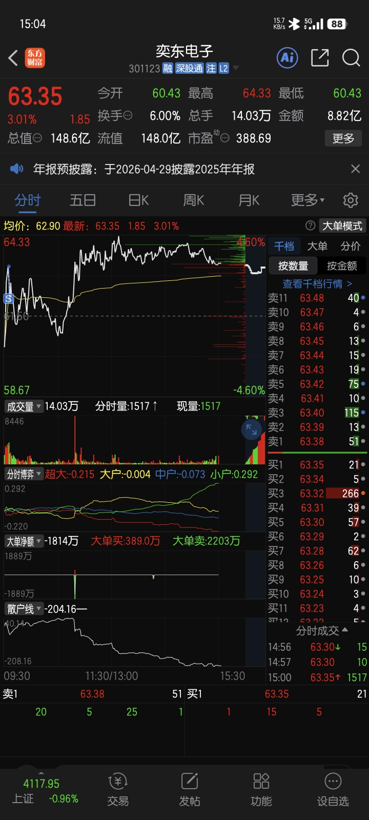 $奕东电子(SZ301123)$ 我真是怕了你了。前天赚10多个点没走,今天保本出了。先去英维特了,等你企稳了再回来!