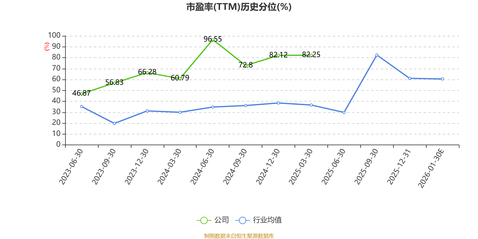 市盈率、市净率为负时,不显示当期分位数,会导致折线图中断。