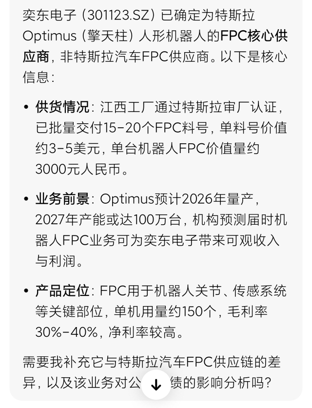 $奕东电子(SZ301123)$ 特斯拉的机器人26年要出100万台。牛