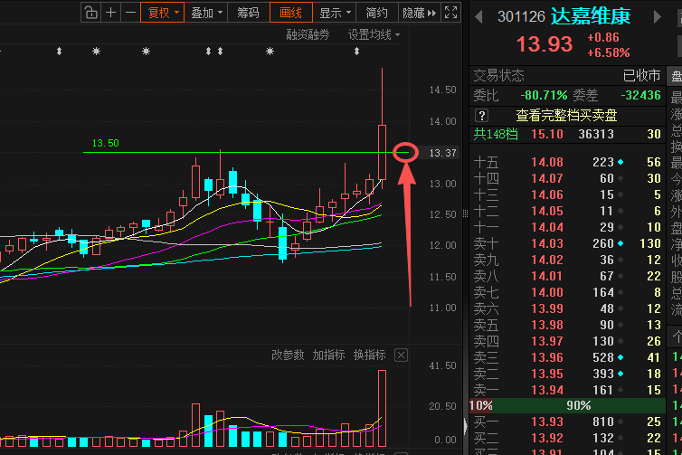 推演:明天短线回踩锚定13.50左右!!